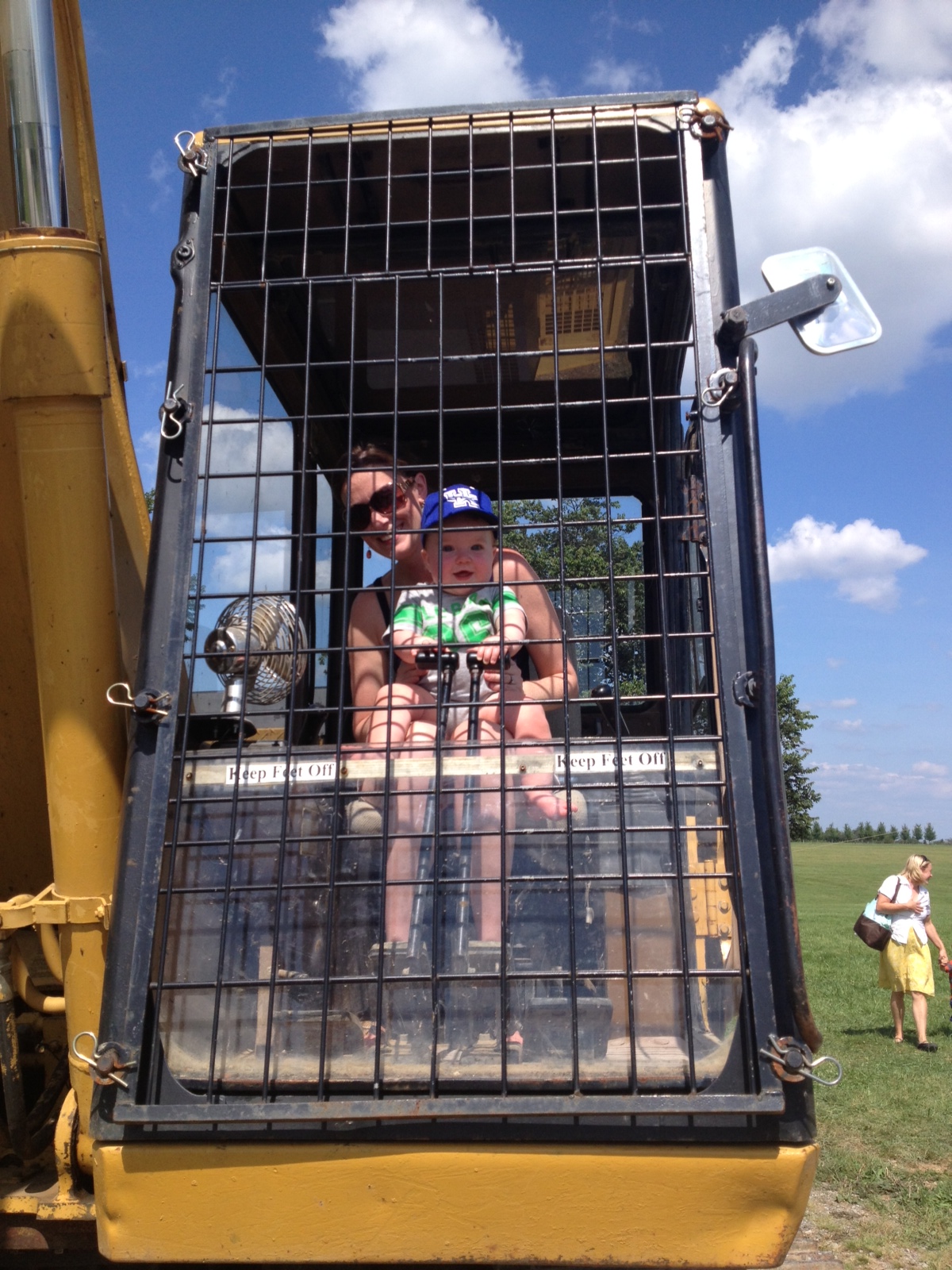 Sunday, Grandma and cousin Hayden and Elliott came down to go to the "touch a truck" event at Keenland. It to was a blast!! Hayden and Elliott loved checking out the Keenland Starting Gate, the go carts, and the hot air balloon. Brody just loved all the green grass he could crawl around in.